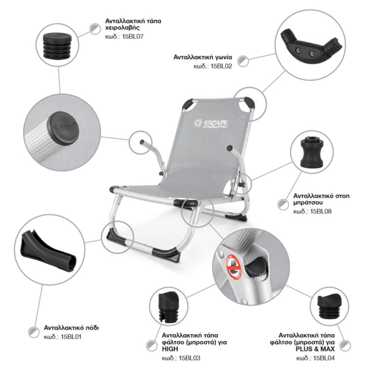 Καρεκλάκι Παραλίας ESCAPE High Γκρι 15681