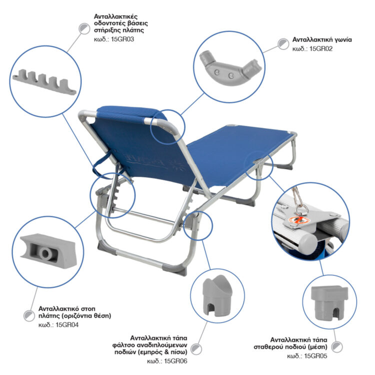 Ανταλλακ. Πλαστικό Μπαρών Υποστήριξης για Ξαπλώστρα Escape Γκρι 15GR07