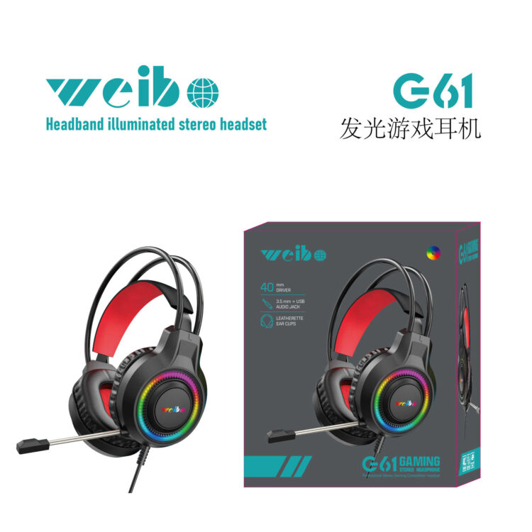 Ενσύρματα ακουστικά Gaming – LED RGB – G61 – Weibo – 658502