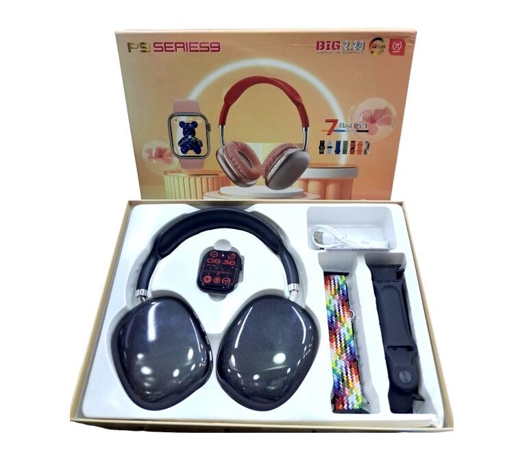 Σετ ασύρματα ακουστικά & Smartwatch με 2 λουράκια – P9 Series 10 – 812235 – Black
