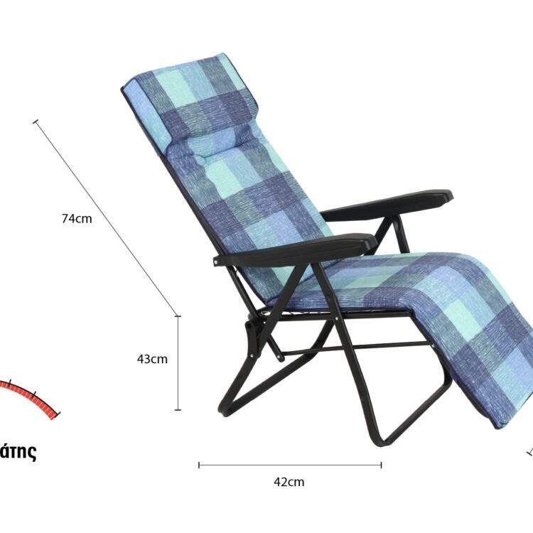 Πολυθρόνα 7 Θέσεων Μαύρου Σκελετού Μπλε Καρό Μαξιλάρι ESCAPE 15637