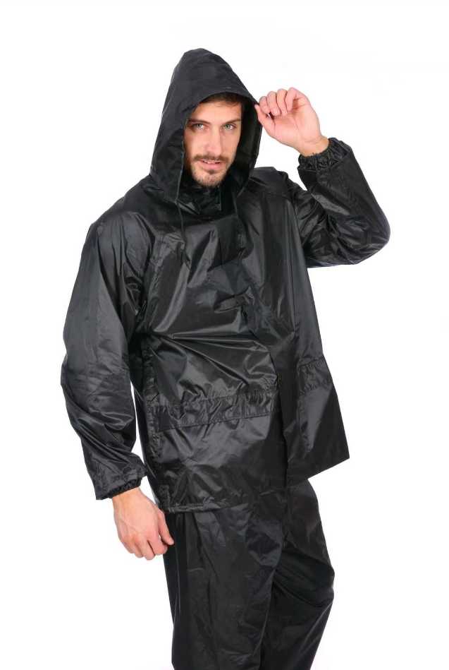 Αδιάβροχη φόρμα με κουκούλα, χρώματος μάυρου – XΧL