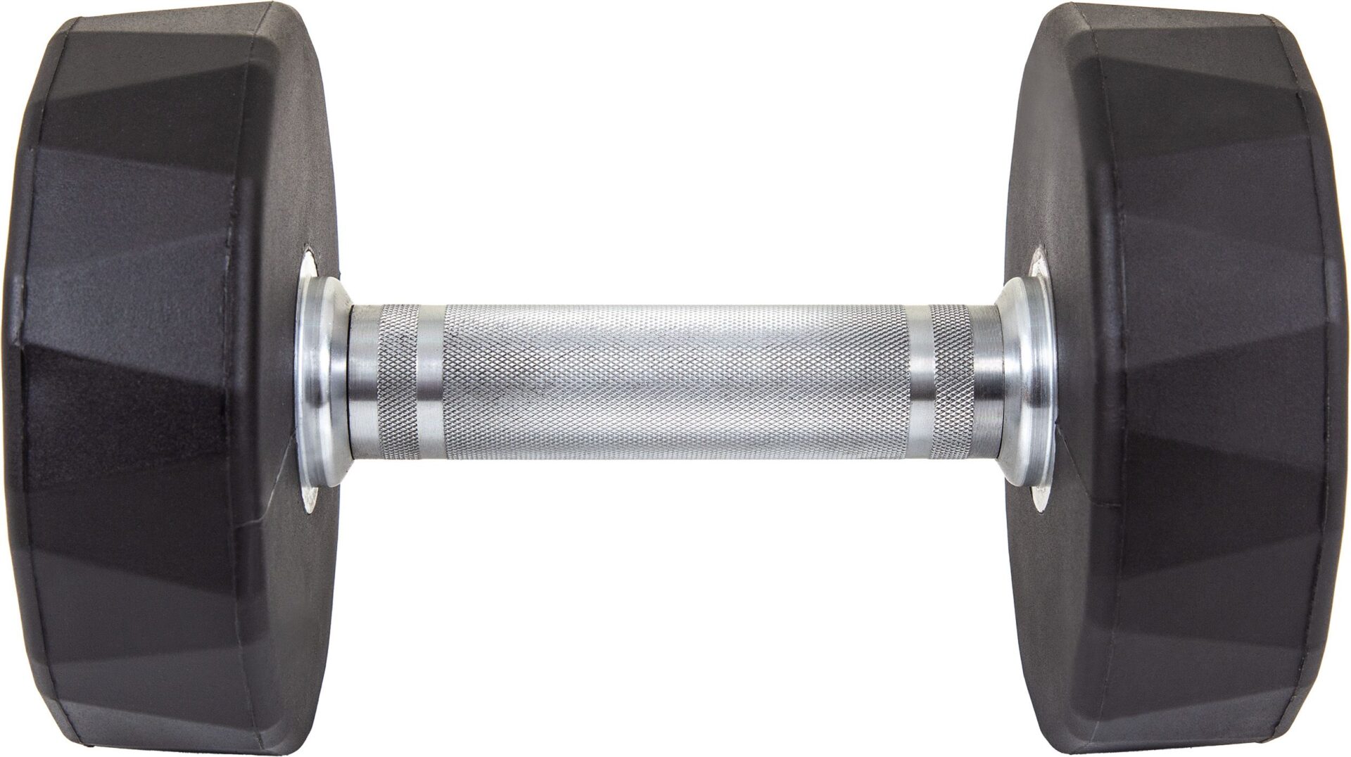 Η λαβή της σειράς αλτήρων Amila Polygon PU Series, είναι κατασκευασμένη από ατσάλι και χρωμιωμένη για καλύτερη αντοχή έναντι της σκουριάς. Το μήκος της λαβής είναι 15 εκατοστά, ενώ το πάχος είναι 32.2 χιλιοστά. Το αντιολισθητικό μέρος της λαβής (knurl) μοτίβου διαμαντιού, μεγέθους 13 εκατοστών, δεν είναι ιδιαίτερα τραχύ, δίνοντας σας την δυνατότητα να χρησιμοποιήσετε τους αλτήρες ακόμα και χωρίς γάντια.