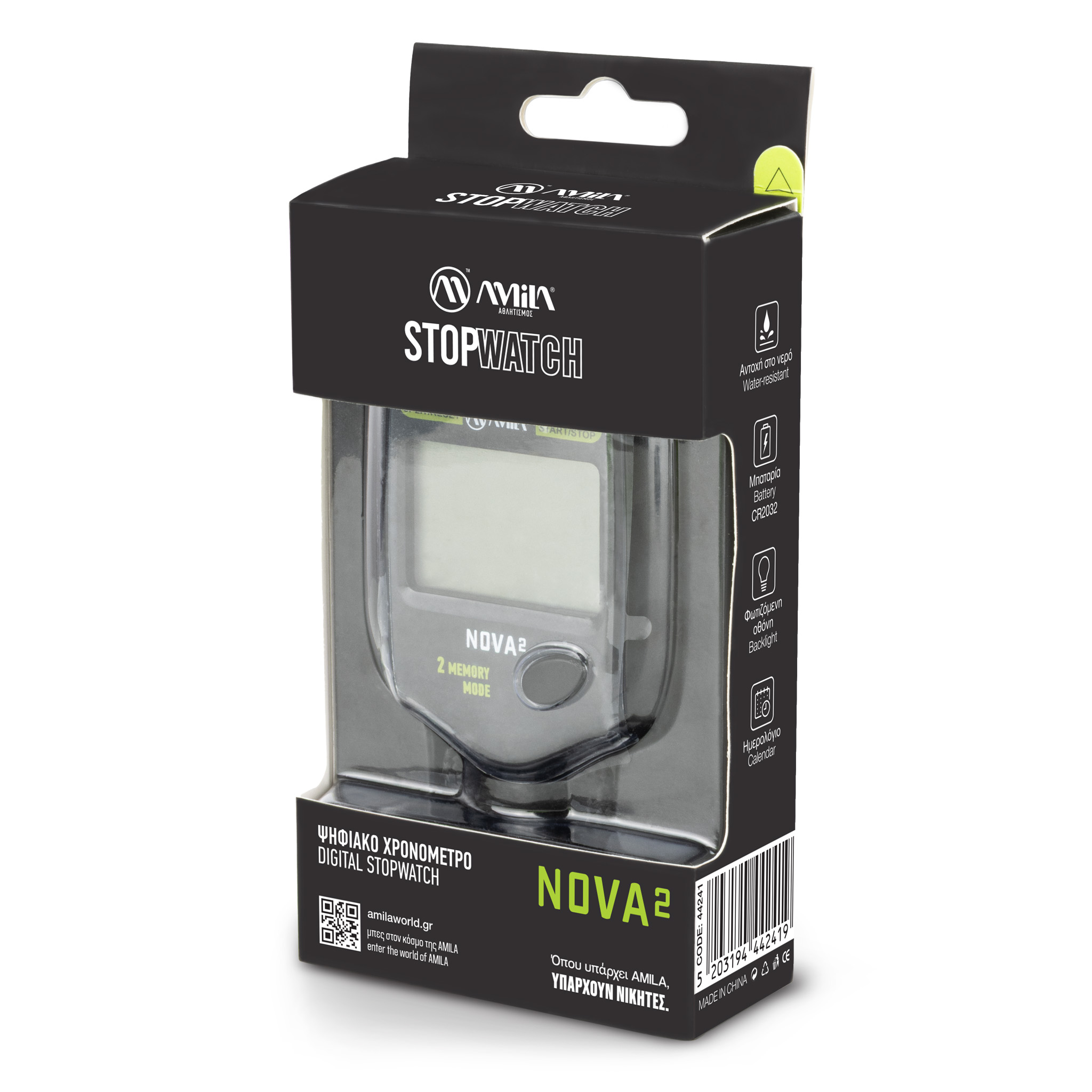 Το AMILA Nova 2 είναι ένα αθλητικό ψηφιακό χρονόμετρο σχεδιασμένο για προπονητές και αθλητές που χρειάζονται υψηλή ακρίβεια και αξιοπιστία σε κάθε στιγμή της προπόνησης. Με ακρίβεια χρονομέτρησης 1/100 δευτερολέπτου για τα πρώτα 30 λεπτά και δυνατότητα καταγραφής 2 split χρόνων, σου επιτρέπει να παρακολουθείς με συνέπεια γύρους, διαλείμματα και διαστήματα υψηλής έντασης. Η οθόνη διαθέτει οπίσθιο φωτισμό για τέλεια ευκρίνεια ακόμη και σε χαμηλό φωτισμό, ενώ η ανθεκτικότητα στο νερό το καθιστά ιδανικό για κάθε περιβάλλον άθλησης.