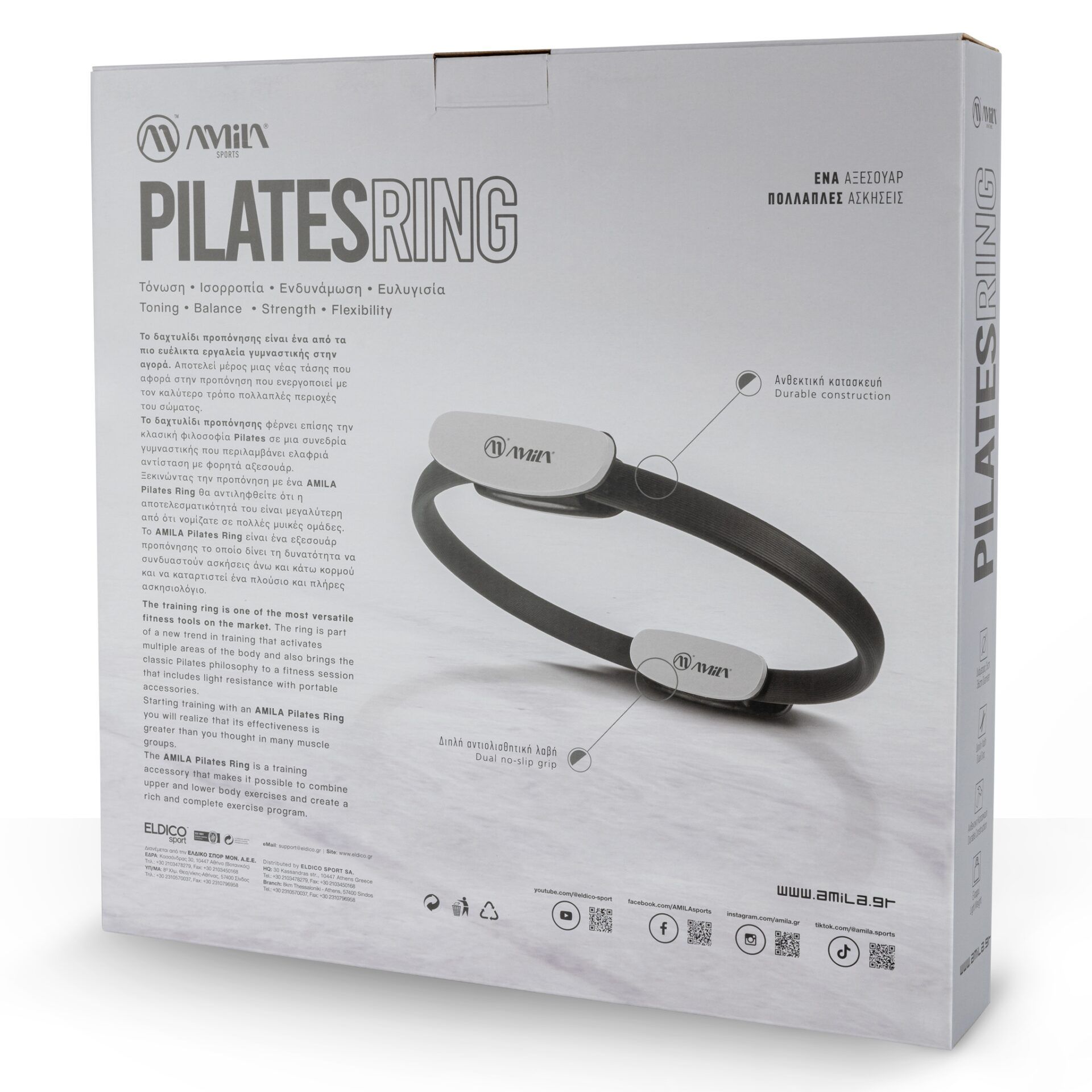 Το δαχτυλίδι Pilates της Amila θα σας εντυπωσιάσει με την ποικιλία ασκήσεων που μπορεί να σας προσφέρει. Χρησιμοποιήστε το για ενδυνάμωση του μυϊκού συστήματος, αύξηση της αντοχής, σύσφιξη και κάψιμο λίπους.