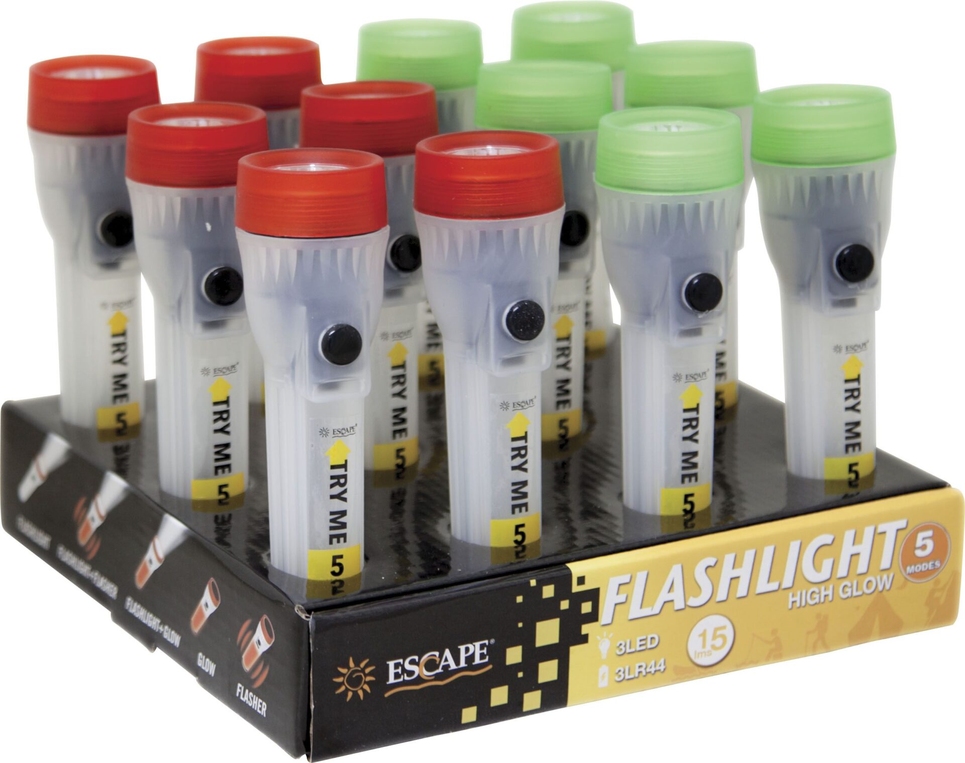 Φακός χειρός LED της Escape, κατάλληλος για χρήση σε δραστηριότητες όπως κατασκήνωση, πεζοπορία, ποδηλασία, κυνήγι, ψάρεμα ή κατά διάρκεια των εργασιών όπως επισκευή στο σπίτι. Λειτουργεί με 3 μπαταρίες LR44 (περιλαμβάνονται). Η μέγιστη ισχύς της φωτεινότητάς του φτάνει έως 15lm.
