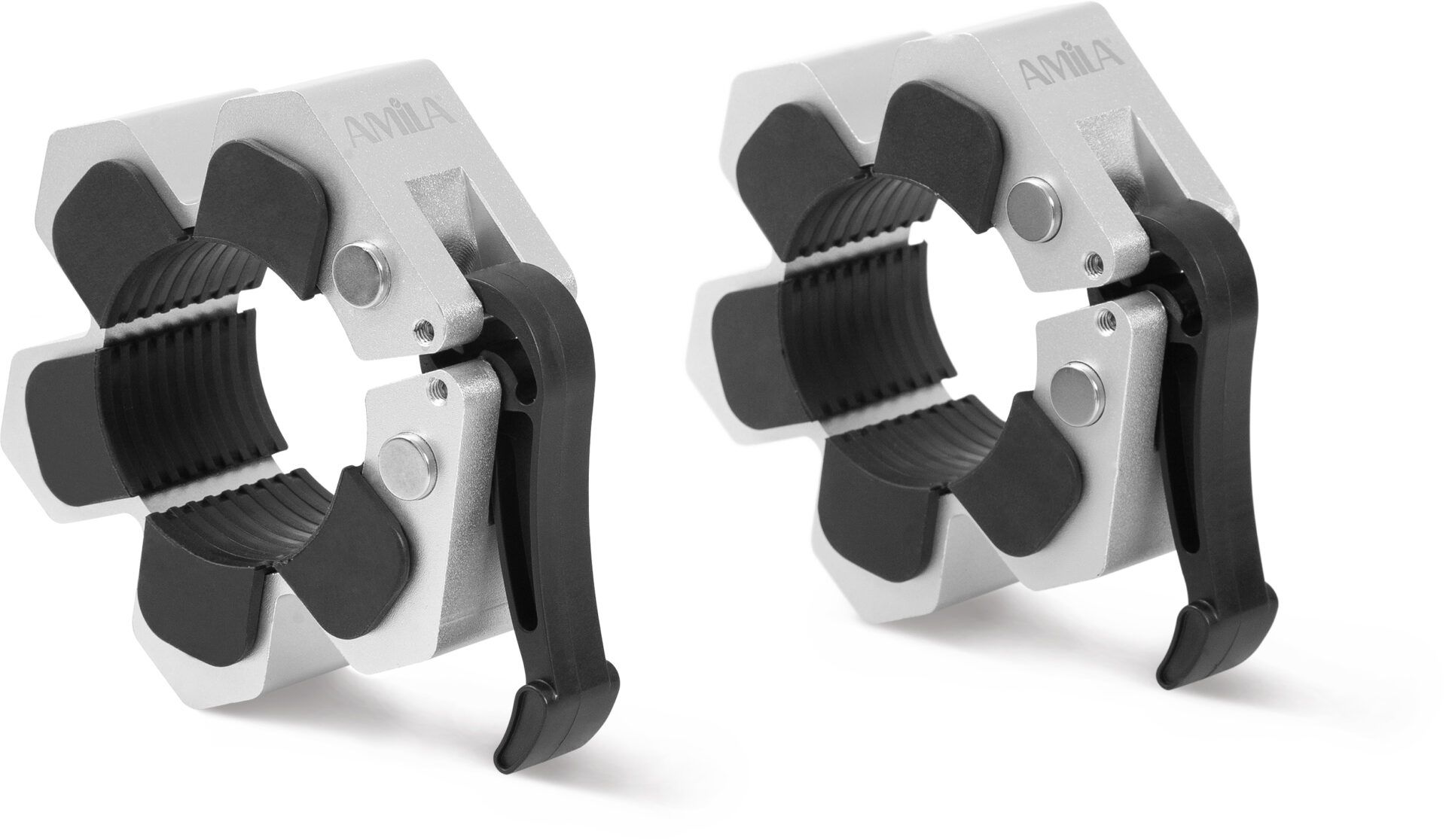 Κολάρα Αλουμίνιου από την AMILA, για ολυμπιακές μπάρες Ø50, με εντυπωσιακό κλείσιμο, λάστιχα προστασίας αντικραδασμικά και μαγνήτες για εύκολη στήριξη.