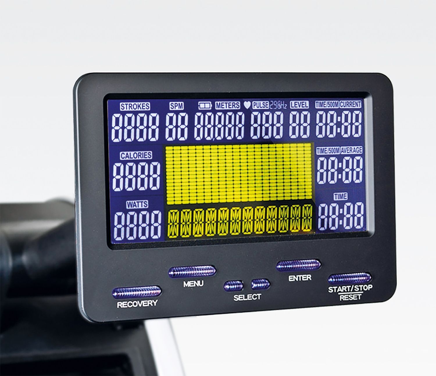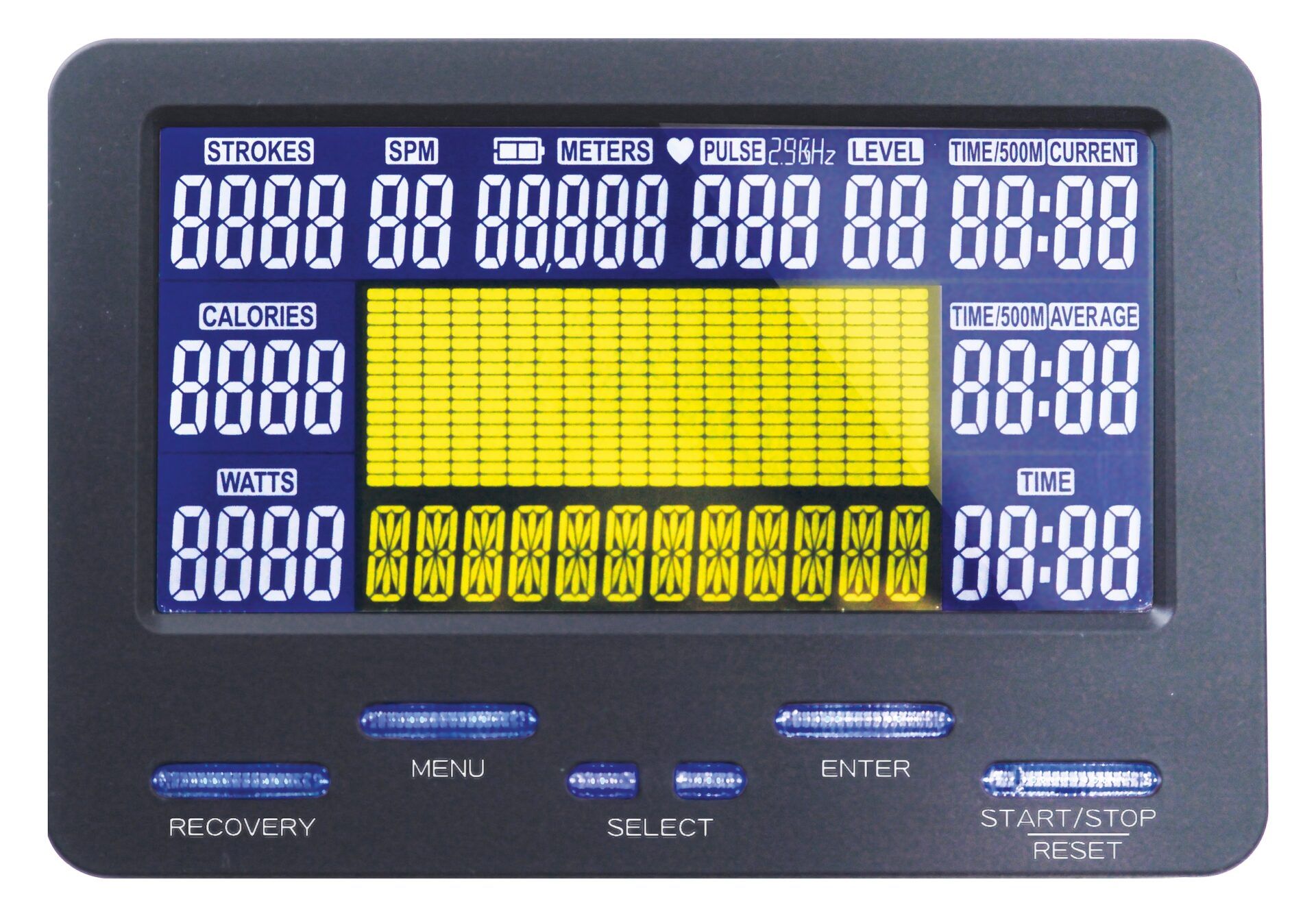 Ενδείξεις: Χρόνος, Επαναλήψεις, Θερμίδες, Απόσταση, Χρόνος, Watt, Καρδιακοί παλμοί, Επαναλήψεις/λεπτό