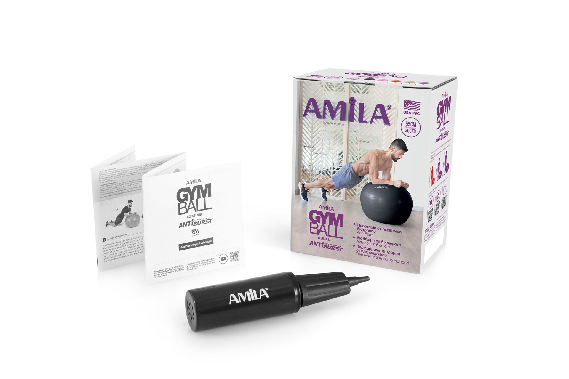 Αυτή η μπάλα γυμναστικής από την Amila μπορεί να χρησιμοποιηθεί εκτός από αξεσουάρ εκγύμνασης σαν καρέκλα στο γραφείο σας, ή στο σπίτι σας. Καθήμενοι σε αυτή τη μπάλα έχετε καλύτερη στάση σώματος, καλύτερη κυκλοφορία του αίματος, μείωση στους πόνους της μέσης, καλύτερη ισορροπία αλλά και εκγύμναση του κορμού και των κοιλιακών, λόγω ενεργοποίησης των σταθεροποιητικών μυών.