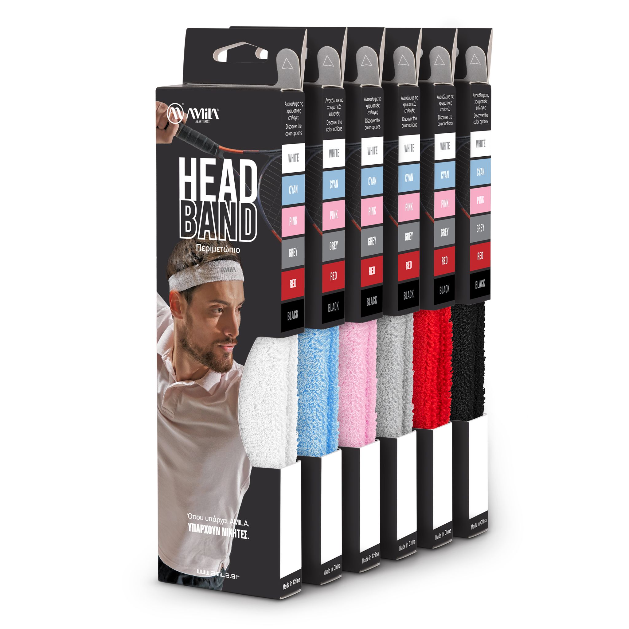 Περιμετώπιο υψηλής ποιότητας για απορρόφηση του ιδρώτα κατασκευασμένα από βαμβάκι. Ραμμένο λογότυπο AMILA επάνω στο προϊόν πλενόμενο στο πλυντήριο.
