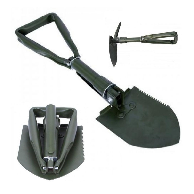 Πολυεργαλείο φτυάρι, σκαπτικό, και πριόνι, ένα πρακτικό εργαλείο για το σπίτι, την έξοχή, το camping, το αυτοκίνητο! Ελαφρύ, μικρό και εύκολο στην μεταφορά. Διαθέτει στιβαρή εργονομική λαβή. Διαθέτει μια πριονωτή άκρη για να πριονίζετε μικρα κλαδιά και κορμούς. Αναδιπλούμενο, με ειδικό τσαντάκι μεταφοράς για να το παίρνετε μαζί σας παντού.