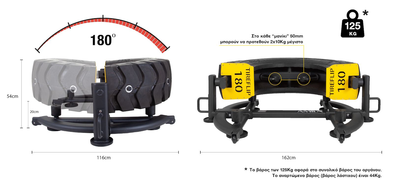 Η ρόδα AMILA Crossfit TireFlip 180°, είναι το ιδανικό αξεσουάρ για περιορισμένους χώρους. Ο απαιτούμενος χώρος είναι πολύ μικρότερος σε σχέση με την απαίτηση που έχουν τα κανονικά λάστιχα.