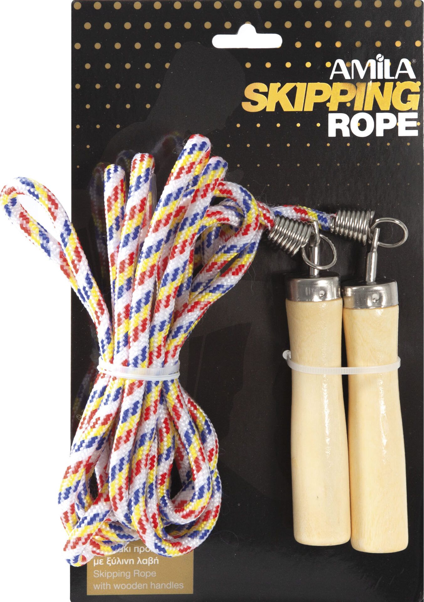 Σχοινάκι γυμναστικής Amila από συνθετικό υλικό, με μαλακές λαβές και μήκος κορδονιού 2.75 m.Αν και απλό στη λειτουργία του, το σχοινάκι είναι ένα κινητό γυμναστήριο που θα δυναμώσει τα πόδια και τα χέρια.