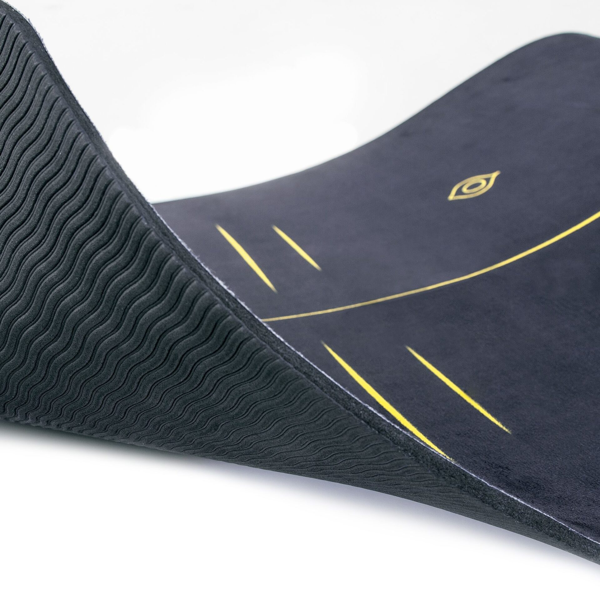 Η επιφάνεια επαφής απο συνθετικό Suede σας δίνει μια υπέροχη αίσθηση πολυτέλειας. Το συνθετικό Suede είναι ένα οικολογικό υλικό το οποίο είναι αντιολισθητικό και παρέχει μεγαλύτερη πρόσφυση όσο αποκτά υγρασία. Στο κάτω μέρος έχει TPE, ένα υλικό φιλικό προς το περιβάλλον το οποίο παρέχει πολύ καλή πρόσφυση με το έδαφος. Για ακόμα καλύτερη πρόσφυση με το στρώμα, περάστε με ένα βρεγμένο πανάκι την πλευρά με το Suede.
