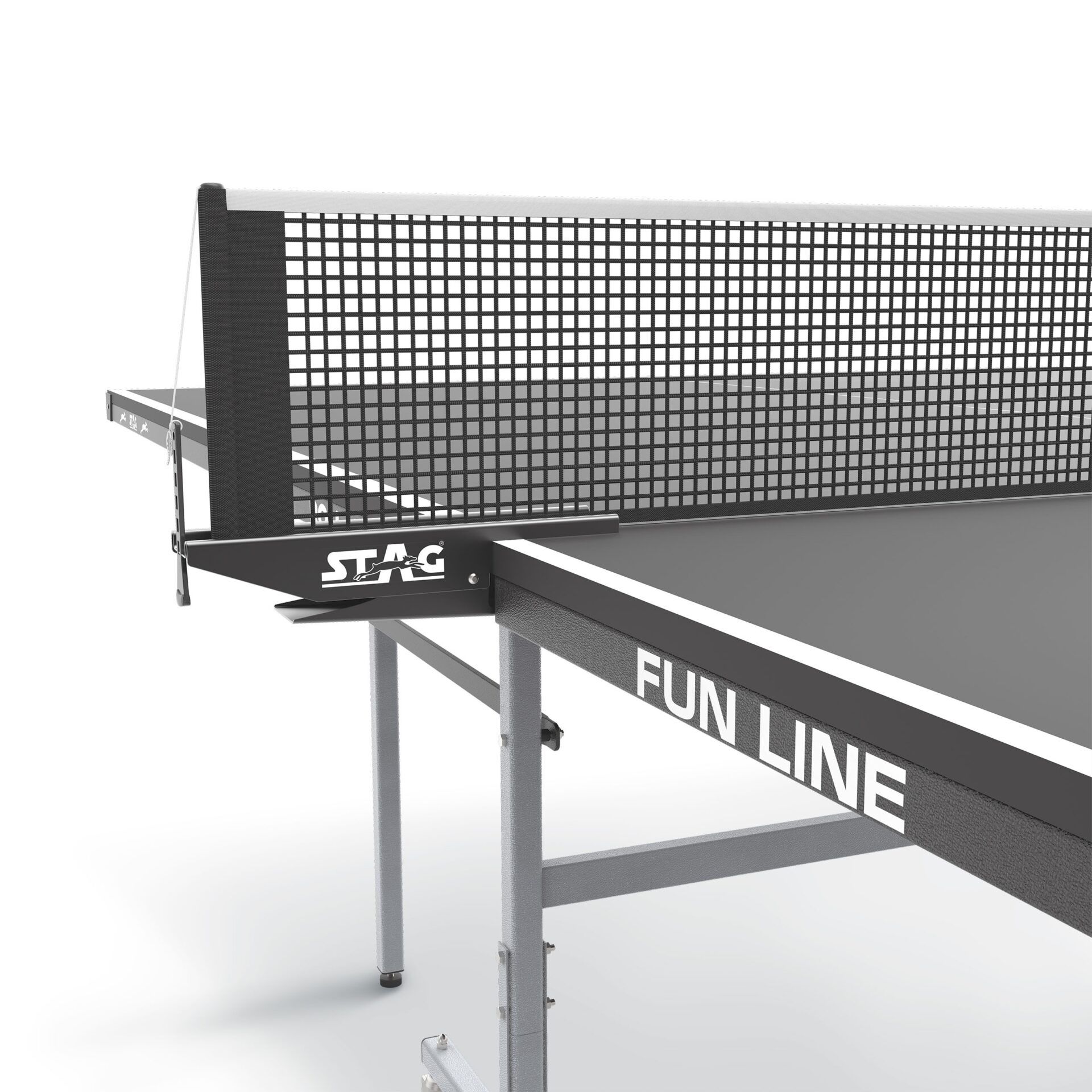Το τραπέζι Ping Pong εσωτερικού χώρου Fun 15 της Stag ανήκει στην κατηγορία των entry level τραπεζιών της εταιρίας χωρίς όμως να στερείται την ποιότητα της εταιρίας. Ο τύπος του τραπεζιού είναι των 2 ξεχωριστών φύλλων τα οποία μπορούν να μεταφερθούν στον χώρο εύκολα με τις ρόδες που διαθέτουν. Διαθέτει κλείδωμα ασφαλείας για να μπορείτε να σηκώνετε όρθια τα φύλλα και να αποθηκεύετε το τραπέζι με ασφάλεια.